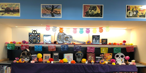 Día de Muertos has been a staple at my library over the last few years. Even when we were (mostly) closed during the pandemic last fall, we assembled a library-themed ofrenda for our children’s room. An ofrenda is a space set aside to remember loved ones who have passed. Last year ours included pictures of important Latinx figures, such as the Mexican painter Frida Kahlo (1907-1954) and the first Puerto Rican librarian in New York City Pura Belpré (1899-1982).